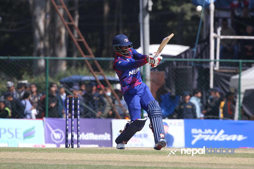 कप्तान रोहित १६ रन बनाउँदा क्याच आउट भए। ४० बलमा १६ रन बनाएका रोहित २५ औँ ओभरको तेस्रो बलमा आर्यन दत्तको बलमा नोआ क्रोसको हातबाट क्याच आउट भए। १३ औँ ओभरको अन्तिम बलमा कुशल मल्ल एलबीडब्लु धरापमा पर्दै आउट भए। ९ बलमा २ रन बनाएका कुशल आर्यन दत्तको बलमा एलबीडब्लु आउट भए।