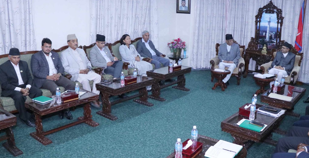 सिंहदरबारस्थित सभामुखको कार्यकक्षमा प्रधानमन्त्रीसहित प्रमुख दलका शीर्ष नेताहरूबीच भएको छलफलमा आफूहरुले पुरानै अडान राखेको प्रमुख सचेतक रमेश लेखकले बताए ।