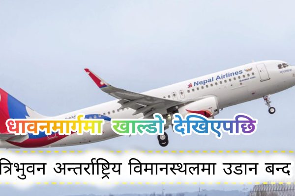 त्रिभुवन अन्तर्राष्ट्रिय विमानस्थल १ घण्टाका लागि सबै उडान बन्द गरिएको छ। धावनमार्गमा खाल्डो देखिएपछि बन्द गरिएको विमानस्थल कार्यालयले जनाएको छ।